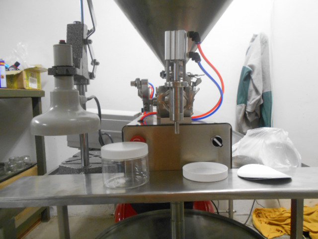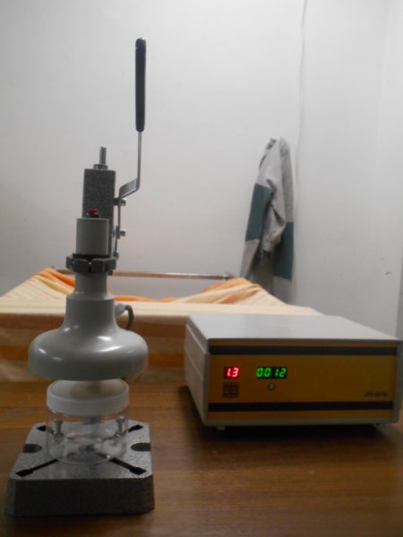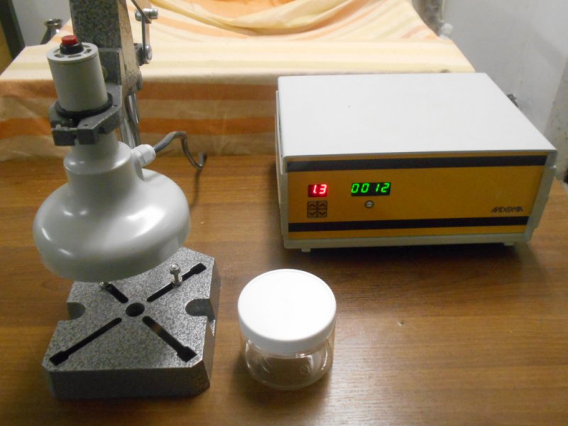 Indukční zařízení k lepení těsnění na sklenice a jiné obaly.